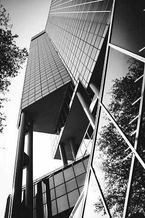 Steel and glass don’t just rise—they lean, catch light, reflect the sky in fragments. This is architecture in tension, modernism in prayer. Held together by angles sharp enough to draw blood.