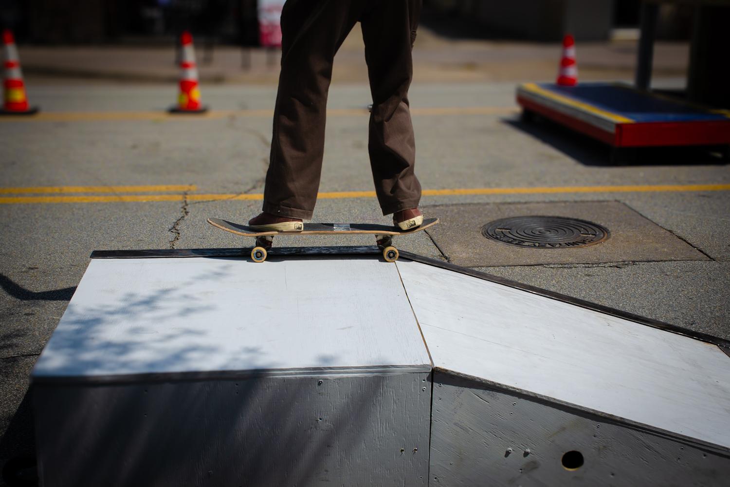 A quiet moment mid-movement—balanced at the edge of momentum. This frame catches the threshold between control and collapse, as if the ramp is waiting to tip the story forward. Urban geometry and soft shadows create tension, but the stillness is temporary.
