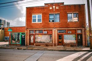 Old bricks and crooked blinds frame the block’s stubborn endurance. This building’s not waiting for your approval—it’s still here.
